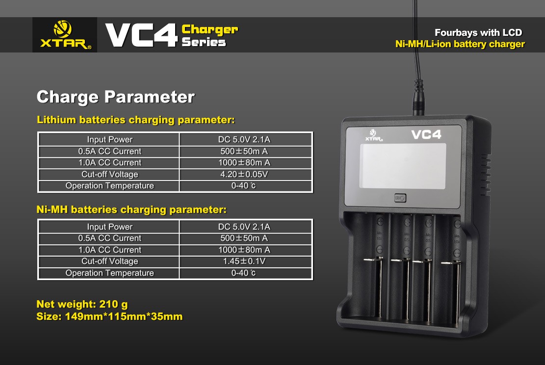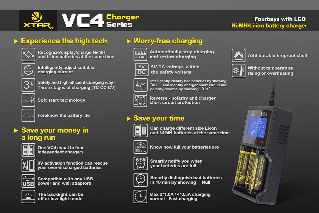 Produktinformationen "XTAR VC4 Ladegerät für Li-Ion & NiMH Akkus"
